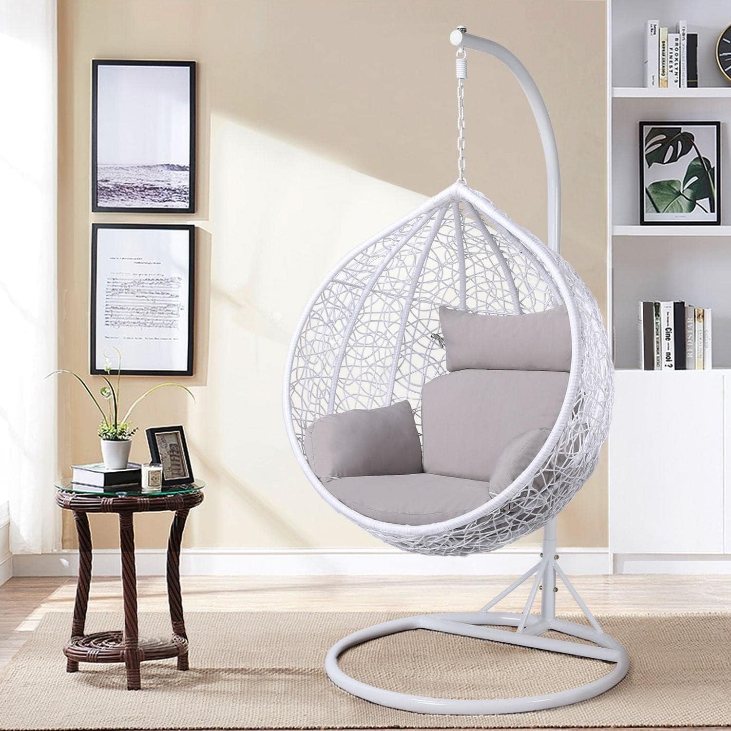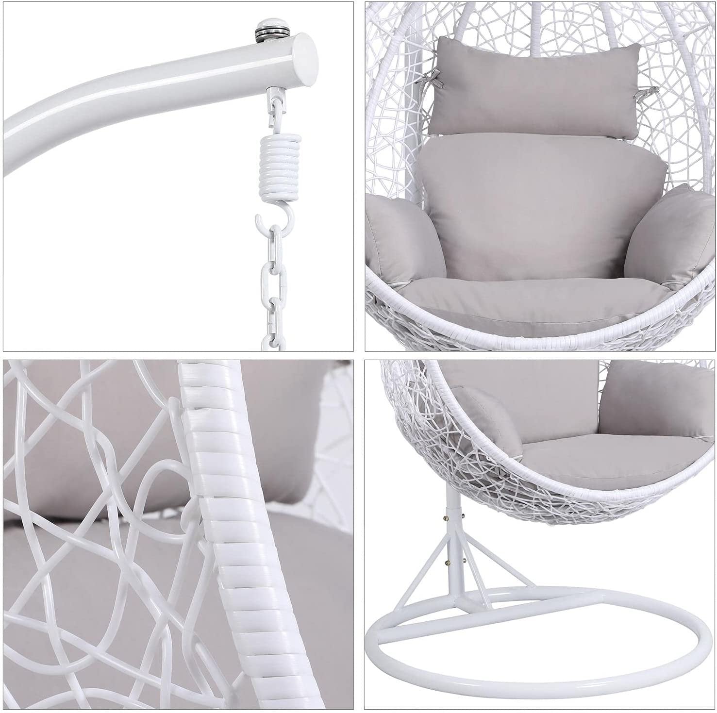 Unmatched Comfort: Our egg-style rocking chair comes with a plush cushion for superior comfort, allowing you to fully unwind. The high backrest, spacious seat, and supportive armrests provide an all-around relaxing experience.